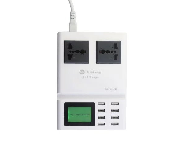 Зарядная станция CDA10 с дисплеем 8 USB + 2 розетки (показывает потребление тока)