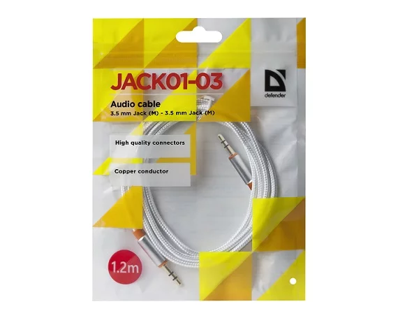 AUX - удлинитель Defender (папа-папа) 3.5мм - 3.5мм, 1.2м, белый в