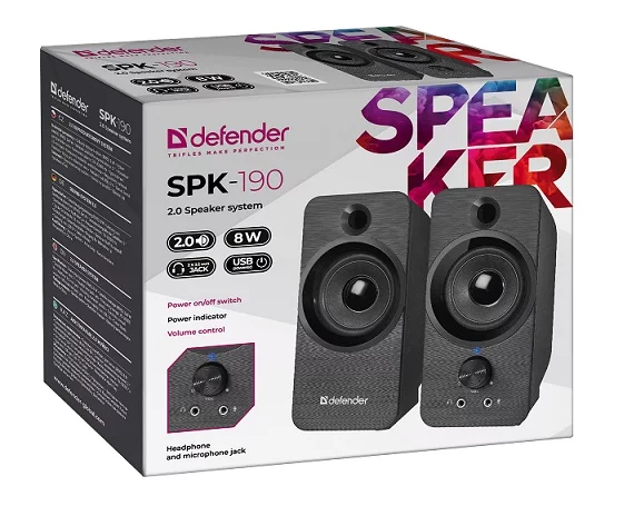 Акустическая 2.0 система Defender SPK-190, 8 Вт, питание от USB, черный, 65190