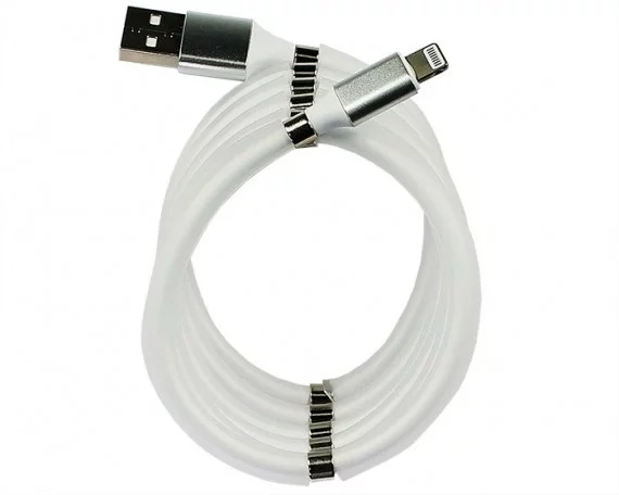 Кабель Lightning Magnetic - USB металл белый, 0,9м в