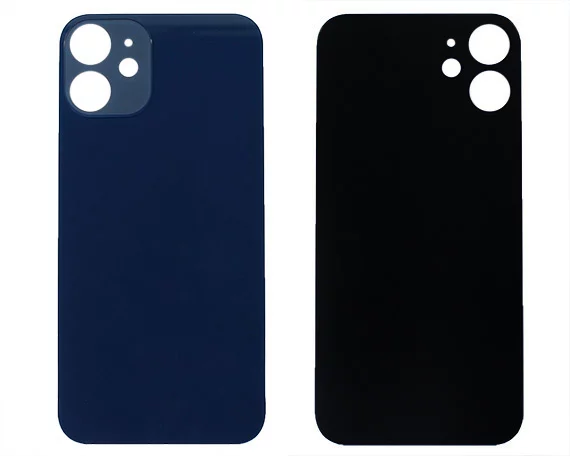 Задняя крышка (cтекло) iPhone 12 Mini (с увел. вырезом) синяя 1 класс