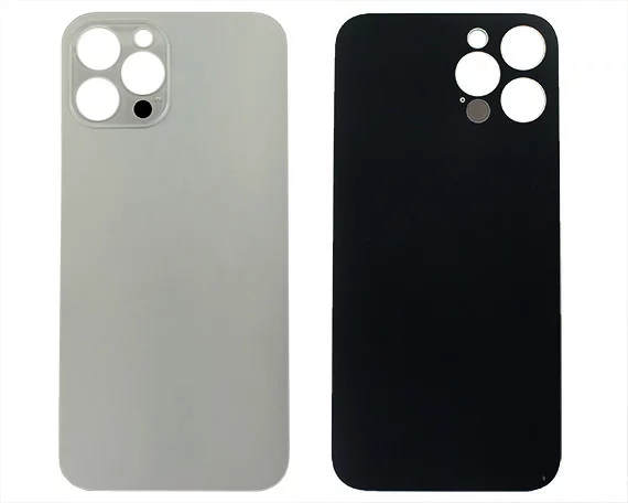 Задняя крышка (cтекло) iPhone 12 Pro Max (с увел. вырезом) серебр 1кл в