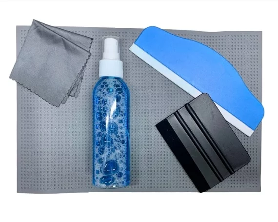 Комплект для поклейки гидрогелевых пленок (противоскльзящий коврик 1шт, салфетка из микрофибры 1шт, ракель малый 1шт, ракель большой 1шт, жидкость для очищения дисплея 1шт)