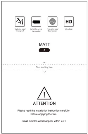Защитная плёнка гидрогелевая матовая, Китай (размер S:120*180mm)