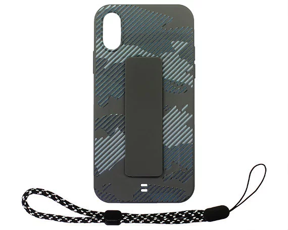 Чехол iPhone X/XS Камуфляж с держателем (серый)