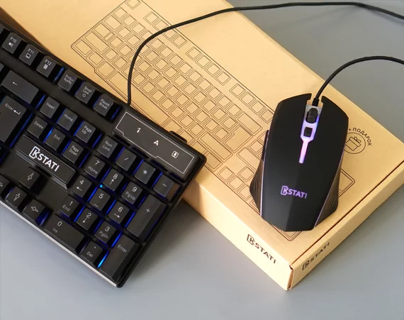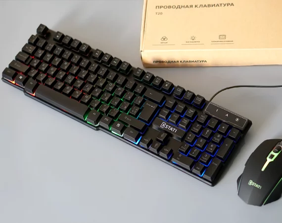 Клавиатура USB Kstati T20 (RU) с RGB подсветкой, черная, полноразмерная + мышь в подарок