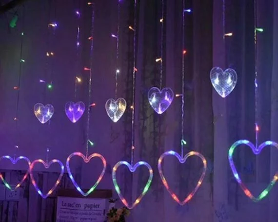 Гирлянда Сердца, RGB, 6 больших, 6 маленьких, 3м, 1м длина шнура питания