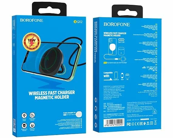 Беспроводное ЗУ Borofone BQ12 с держателем черный в
