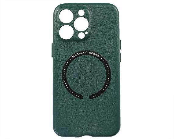 Чехол iPhone 13 Pro Leather Magnetic, темно-зеленый