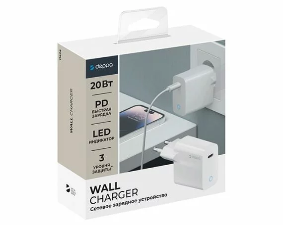 СЗУ-1USB-C Deppa, PD, 20W, белый, 11424 в