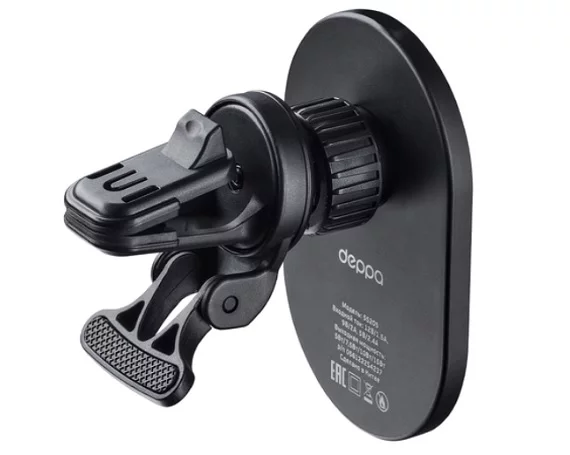 Автомобильный держатель Deppa Mage Safe Crystal Qi магнитный, черный, 55205