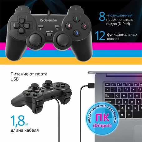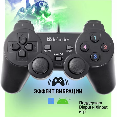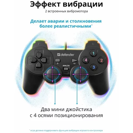 Проводной Геймпад (джойстик) Defender Omega, USB, 12 кнопок, 2 стика, 64247