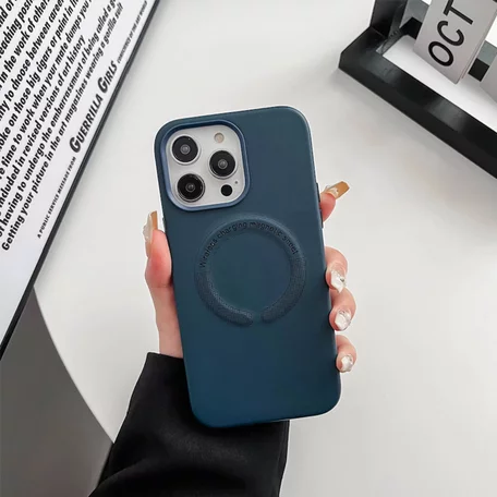 Чехол iPhone 14 Pro Max Leather Candy MagSafe, темно-синий