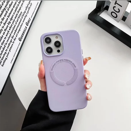 Чехол iPhone 14 Leather Candy MagSafe, лиловый
