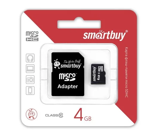 Карта памяти MicroSDHC "SmartBuy" (4GB cl10 + SD) в