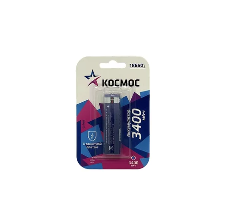 Аккумулятор 18650-1BL КОСМОС, 3400 mAh, Li-Ion, с защитой в