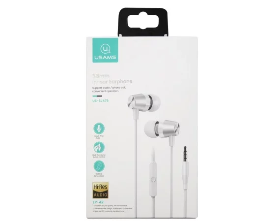 Наушники Usams EP-42 с микрофоном белые в