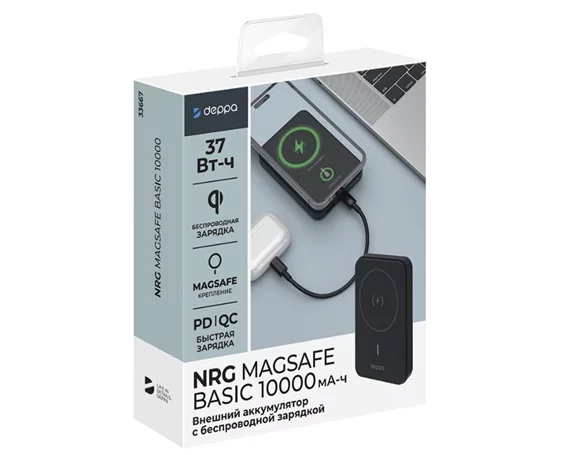 Внешний АКБ 10000 mAh NRG MagSafe Basic, QI 15W, Deppa, черный, 33667 в