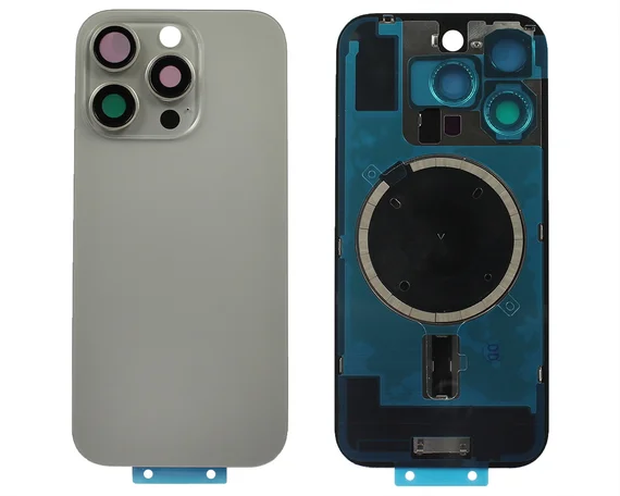Задняя крышка (стекло) iPhone 16 Pro (со стеклом камеры в сборе+магнит) натурал титан 1 класс