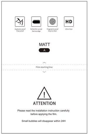 Защитная плёнка гидрогелевая матовая, Китай (размер S:120*180mm) в
