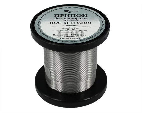 Припой ПОС-61 без канифоли d=0,5мм (100гр) катушка в
